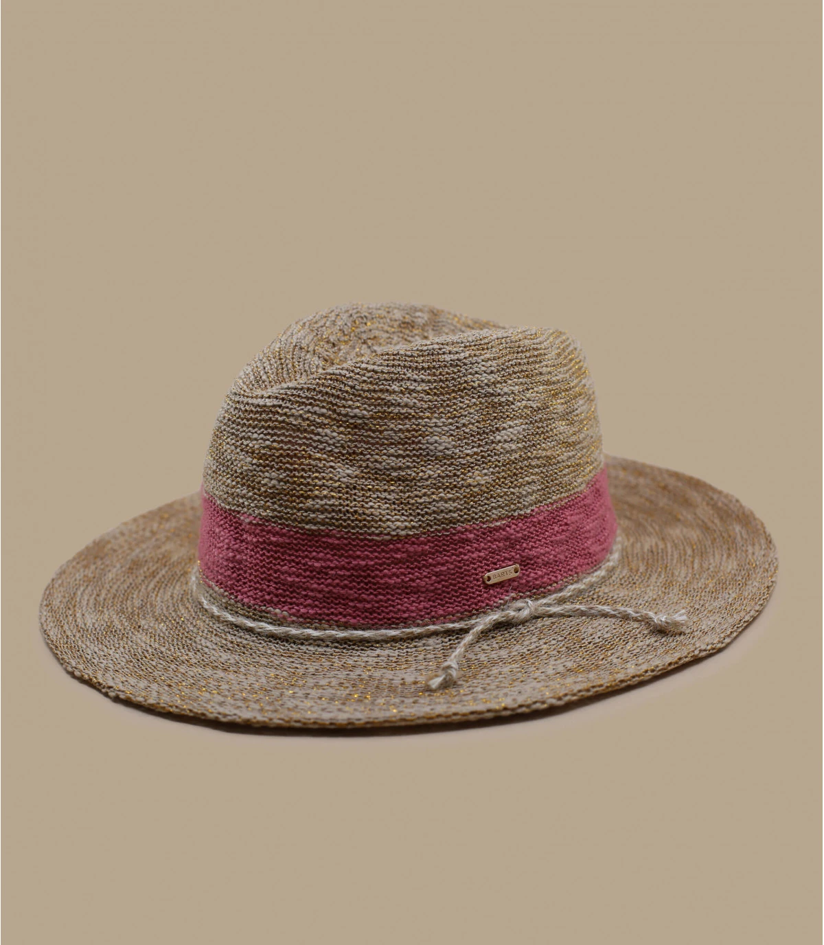 Optez pour un chapeau fedora en coton très féminin ! Il est décoré autour de la calotte d’un bandeau de couleur rose comme du rouge à lèvres et d’une cordelette qui donne un effet marin. Son tressage est respirant et résistant.