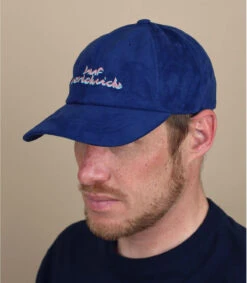 Avec son toucher velouté et son logo brodé Huf Worldwide, cette casquette Huf bleue à visière courbée en cuir suédé se distingue. Elle s’ajuste au dos par un système strapback avec une belle boucle en métal.