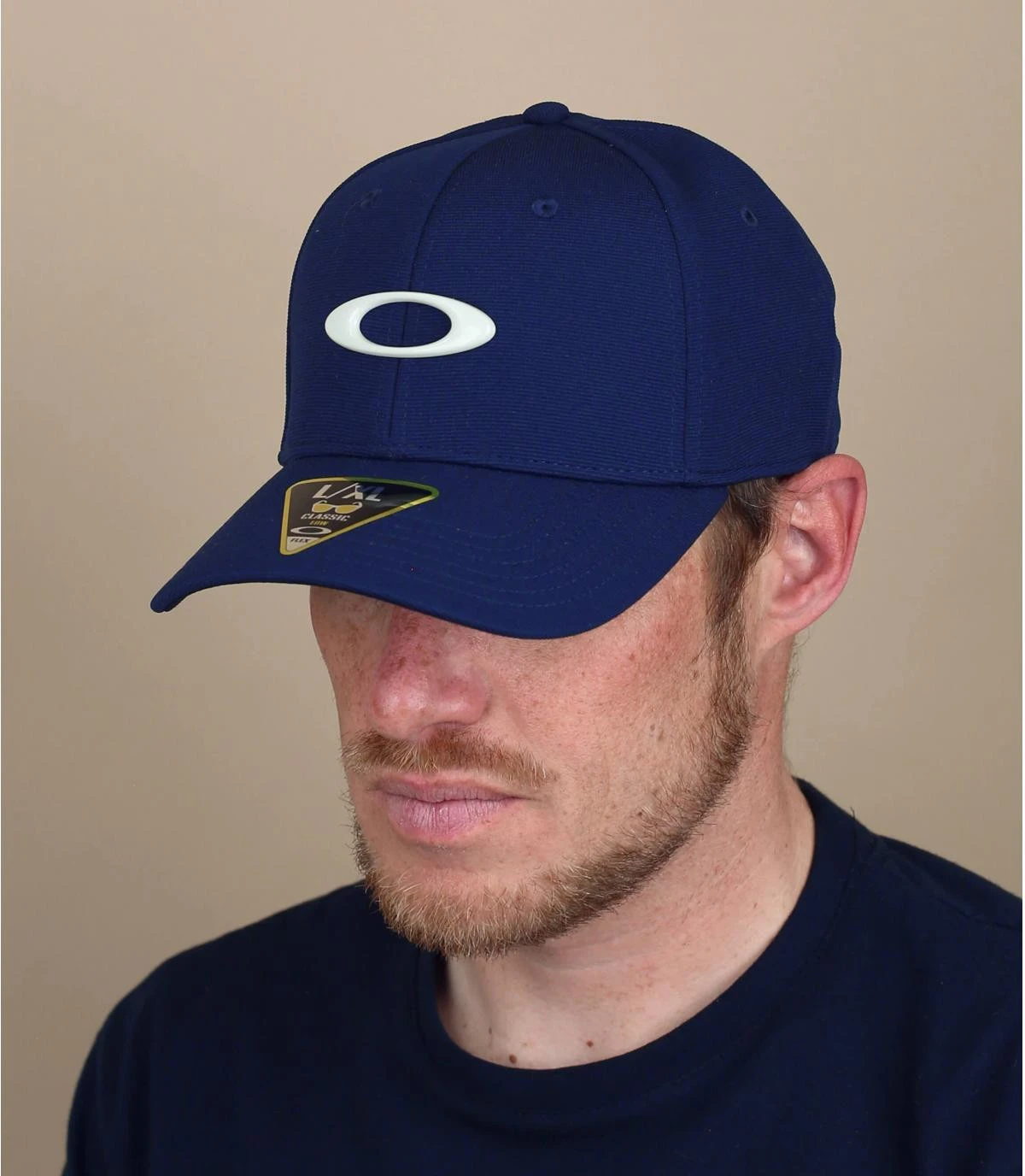 Affichez votre passion pour les sports d’action avec cette casquette Oakley bleu marine à visière courbée, confectionnée dans une matière agréablement stretch pour bien d’adapter à votre tour de tête. Elle est relevée d’un logo en métal gris et garnie d’une bande de confort respirante à l’intérieur.