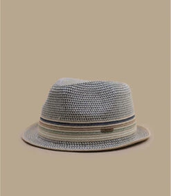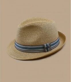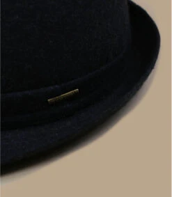 Chapeau Stetson bleu marine de forme trilby avec ruban autour de la couronne, en feutre de laine imperméable et indéformable. Le chapeau mythique Stetson.