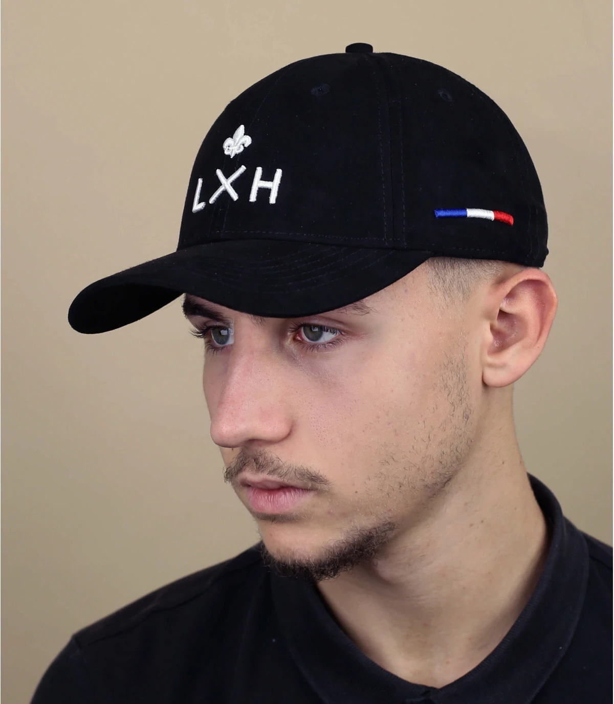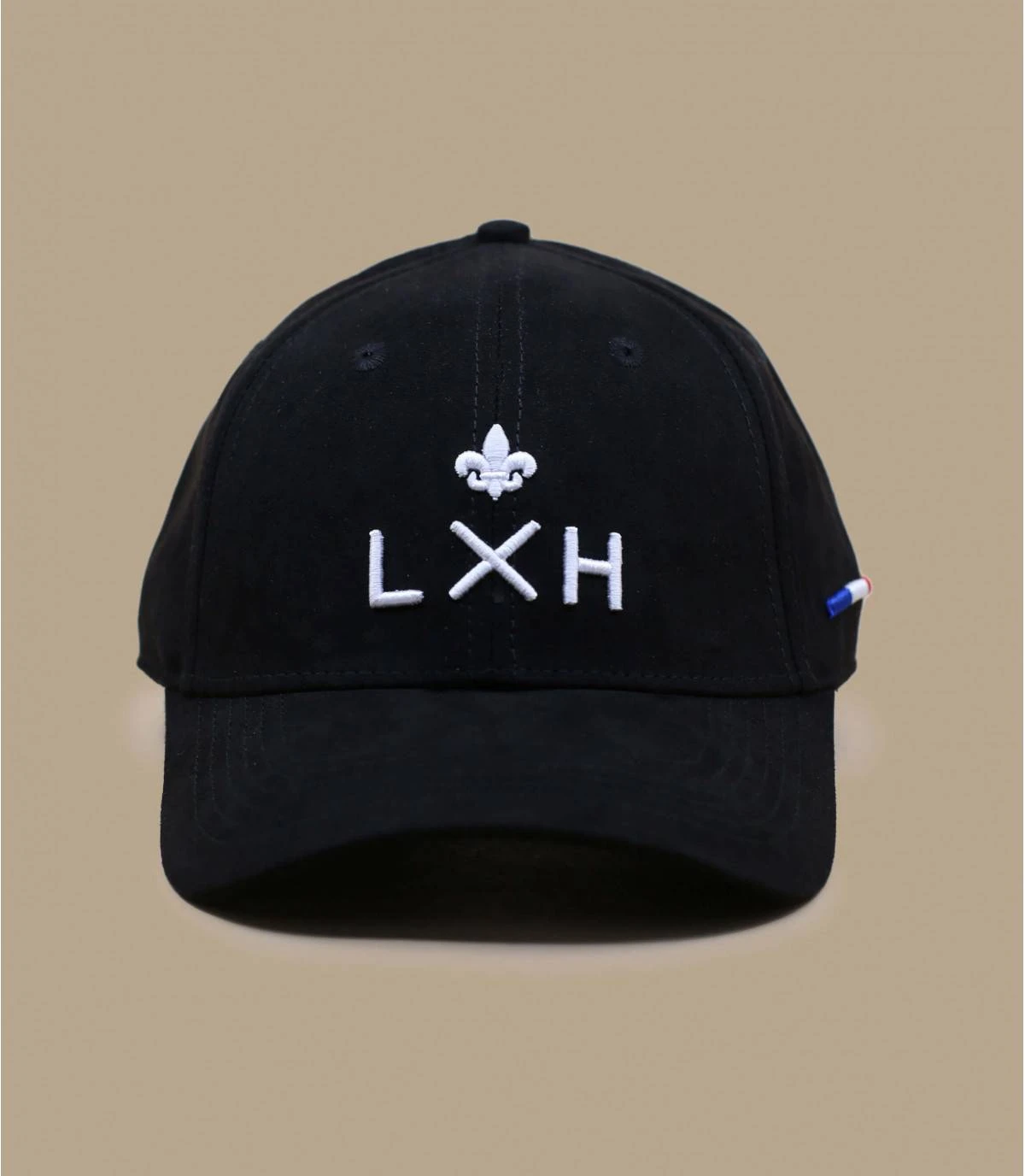 Le suédine de cette casquette noire distinguée a été choisi avec soin dans le respect de la cause animale. Elle convient à tous les tours de tête avec sa sangle ajustable. Le drapeau tricolore brodé sur le côté marque un style et une élégance naturelle.